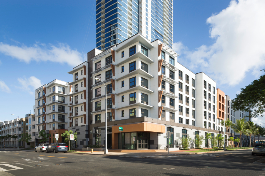 Keauhou Lane is a mixed-use mid-rise development consisting of 209 rental residential units and street-level retail in the heart of Kakaako. The structure is a precast prestress building with composite concrete topping which reduced construction time and construction waste at a site which had very limited space. Seeking LEED Platinum certification, Keauhou Lane incorporates an energy and water conservation system, including a 58-panel solar hot water system that meets 40% of the hot water heating load. Keauhou Lane is located adjacent to the future Kaka’ako Rail Station which will allow easy train access for the future tenants to other parts of the city when rail is completed. Keauhou Lane residents will enjoy a unique urban place known for its rich cultural, artistic, and creative offerings.