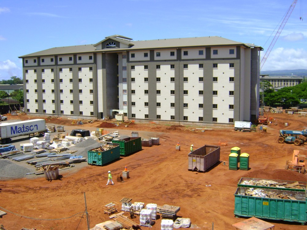 Hawaiian Dredging performed this design-build project in Schofield Barracks, Oahu, to provide this Unaccompanied Enlisted Personnel Housing (UEPH) facility for 192 persons. The main portion of the project was the new 81,000 square foot building comprised of 96 two-bedroom units each with a kitchen and bath.